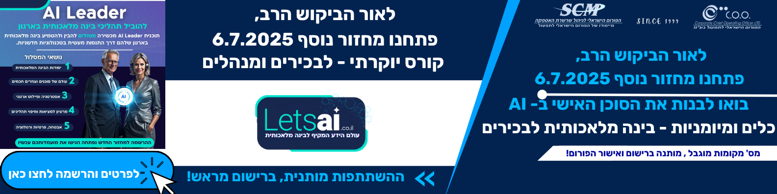לאור הביקוש הרב, פתחנו מחזור נוסף בתאריך: 6.7.2025 הקורס התמלא לא ניתן עוד להרשם